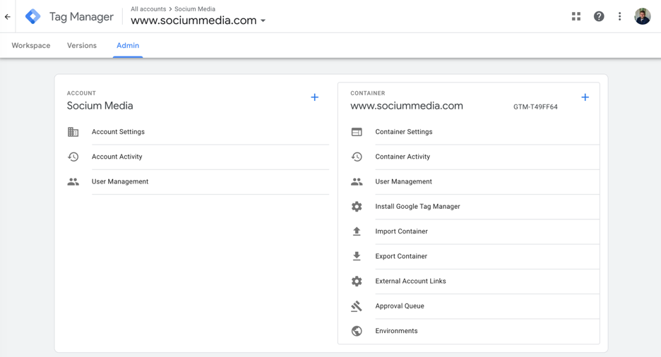 To grant access to your Google Tag Manager container, select User Management under the container admin options.