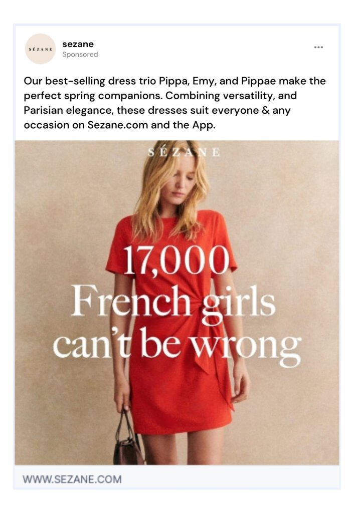 By showcasing their popularity, Sezane evoked a feeling of FOMO (fear of missing out) and reinforced the quality of their brand