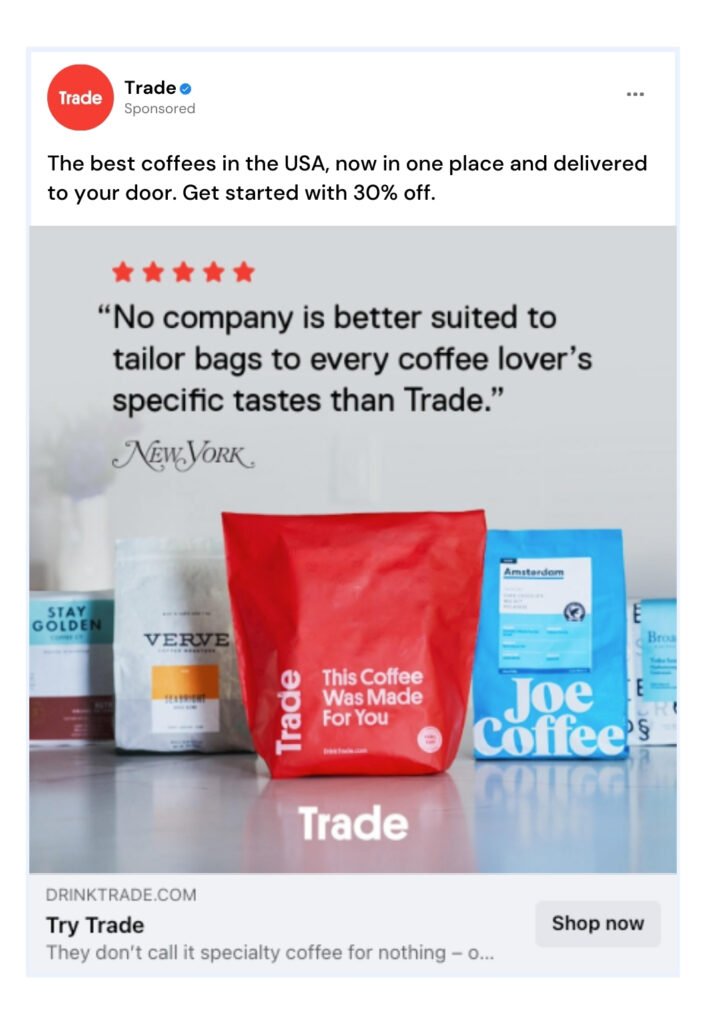By showcasing endorsements from a well-known magazine brand, Trade built authority and trust, influencing the decision-making process for potential consumers